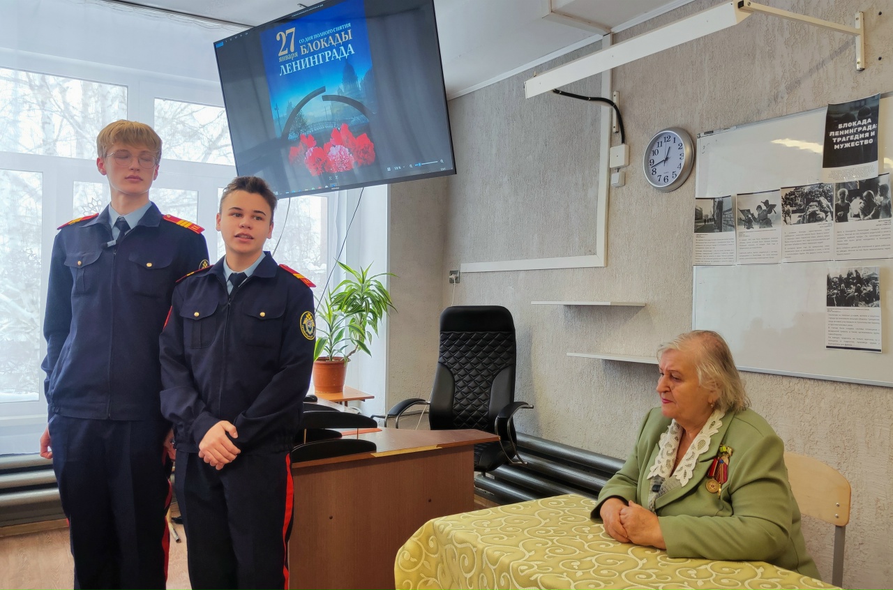В Барнаульском кадетском корпусе для кадет следственного управления СК России по Алтайскому краю состоялся урок мужества, посвященный 82-й годовщине снятия блокады Ленинграда. В рамках патриотического воспитания молодежи и в преддверии Дня полного освобождения Ленинграда от фашистской блокады состоялась встреча наших  кадет с ветераном Великой Отечественной войны, председателем краевой общественной организации «Жители блокадного Ленинграда» Светланой Михайловной Ерыгиной.